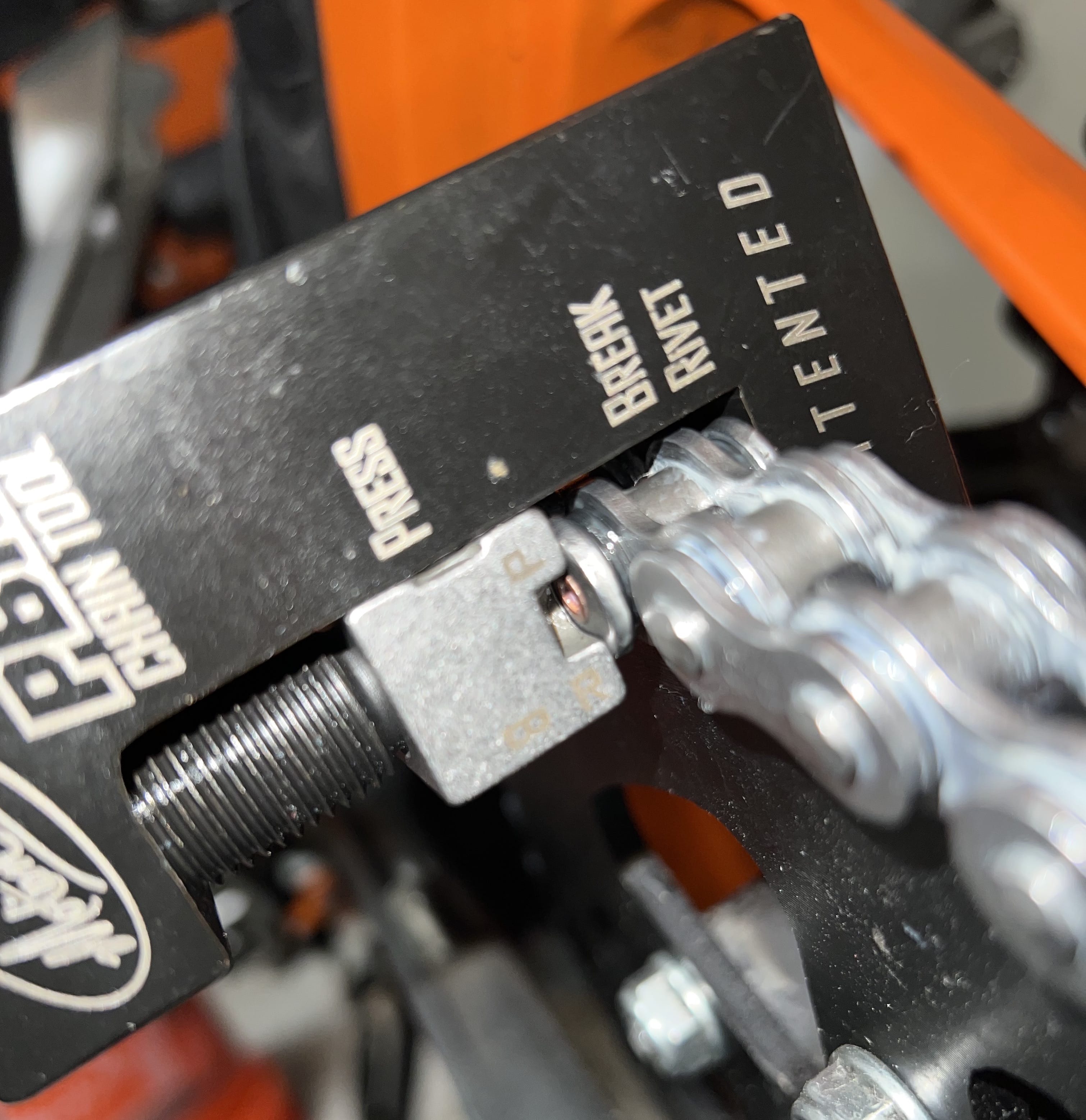 Itâs also important to check that the chain tool is properly aligned - some chain tools have a dimple on the other side of the riveting press that fits around the factory rivet on the other side of the master link.